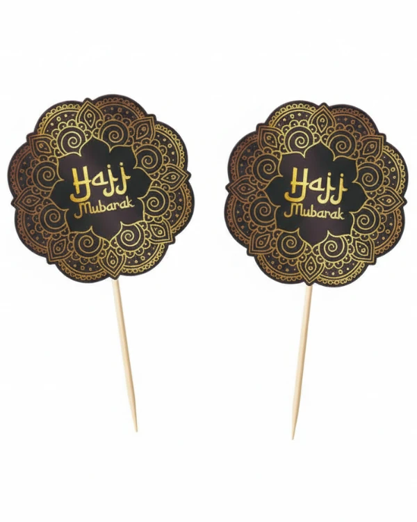Fullfør feiringen av en fullført pilegrimsreise med disse eksklusive pinnene prydet med teksten “Hajj Mubarak”. Den tidløse kombinasjonen av svart og skinnende gull gir serveringen et luksuriøst og verdig preg som virkelig ærer den store begivenheten. De er perfekte for å pynte opp dadler, småretter eller fingermat når du ønsker pilegrimer velkommen hjem, og de tilfører en elegant rød tråd til hele festbordet.