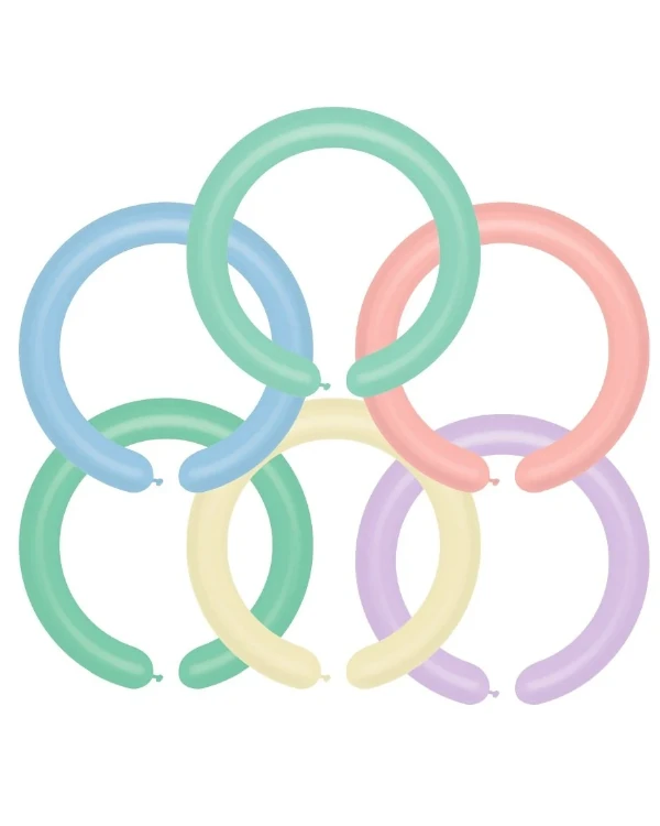 100 stk figurballonger i Macaron (Assortert) mix. Disse ballongene har myke og delikate farger som gir et ekstra dekorativt og lekent uttrykk.
