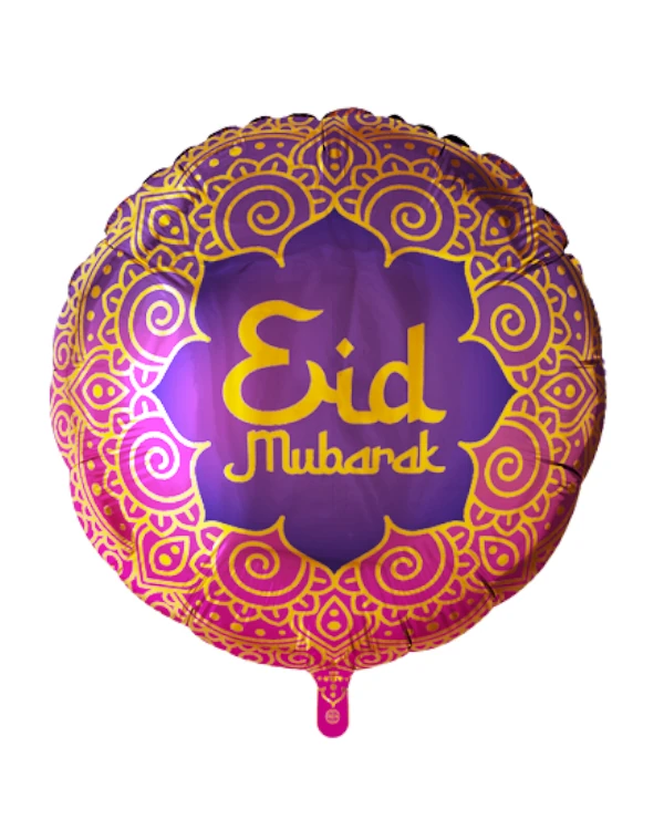 Fargerik og dekorativ folieballong med teksten Eid Mubarak. Perfekt til å pynte hjemmet, selskapslokalet eller Eid-feiringen. Ballongen måler 45 cm og kan fylles med helium eller luft. Skaper en festlig og stemningsfull atmosfære.
