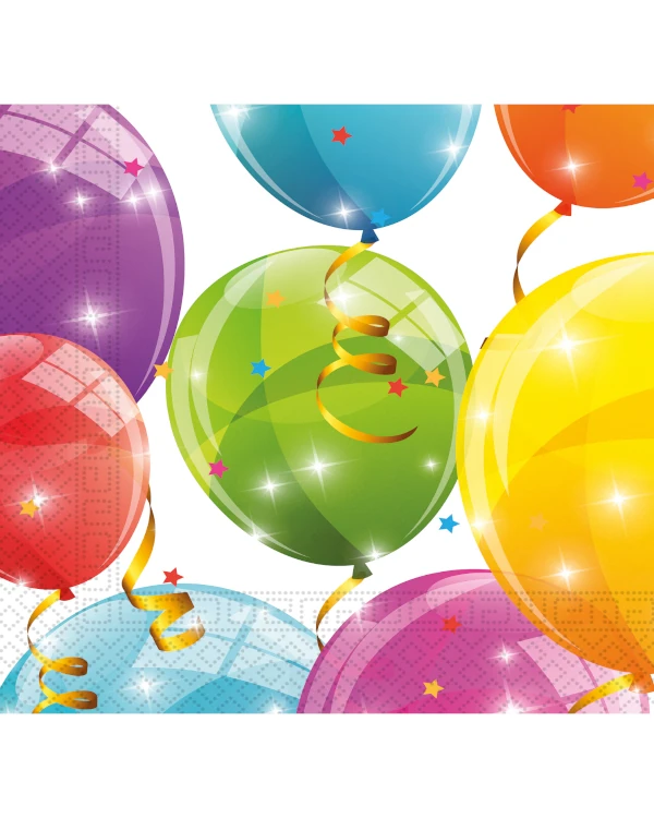 Servietter (20stk): Glitrende ballonger – med stjerne – 33 x 33cm