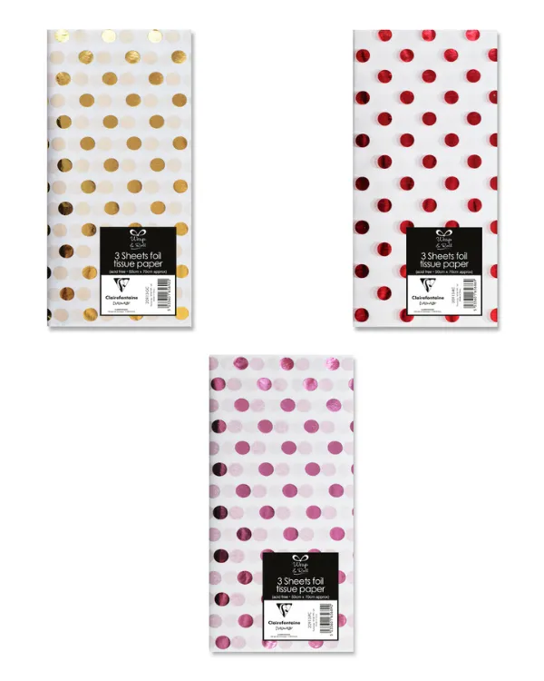 Silkepapir (3stk): Prikker – Flere farger – 50 cm x 70 cm