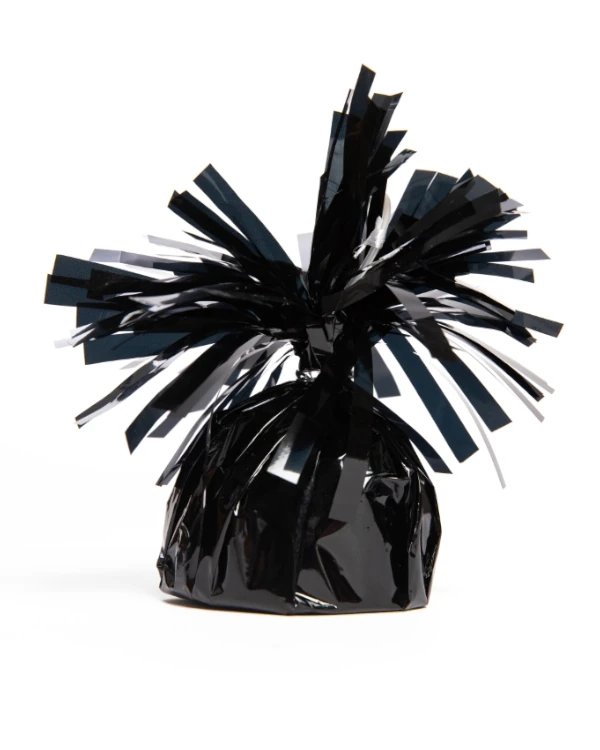 1 stk ballongvekt med folie på 170 gram i en nydelig svart farge. Ideell for baby shower, temafester og andre stilfulle feiringer. Holder ballongene samlet og tilfører en elegant touch til festbordet.