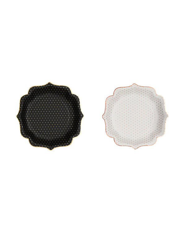 10 stk tallerkener på 21 cm. Kommer i svart eller hvit med gullprikker. Perfekt pynt på fest eller nyttårsfeiring.